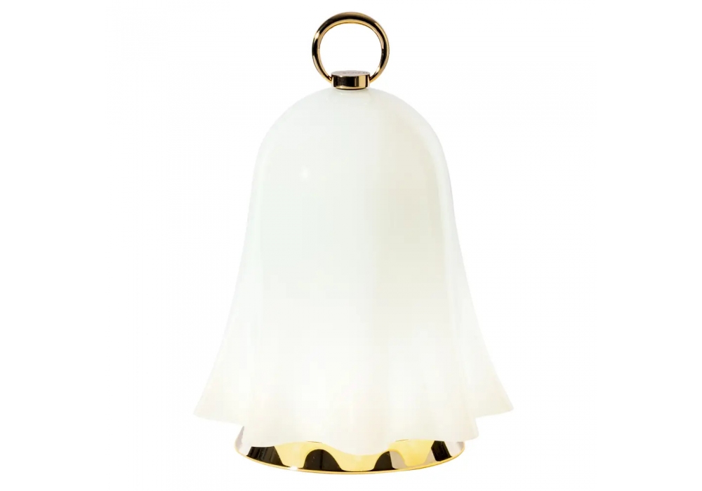 Fantasmino XL diseñada y producida por Venini es una lámpara de mesa recargable en cristal opalino. Disponible en diferentes acabados.