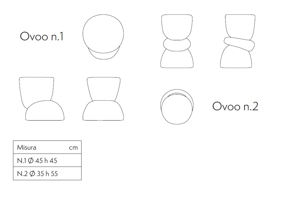 | Dimensiones | Nr.1_ Ø 45 x H 45 cm; Nr.2_ Ø 35 x H 55 cm. |