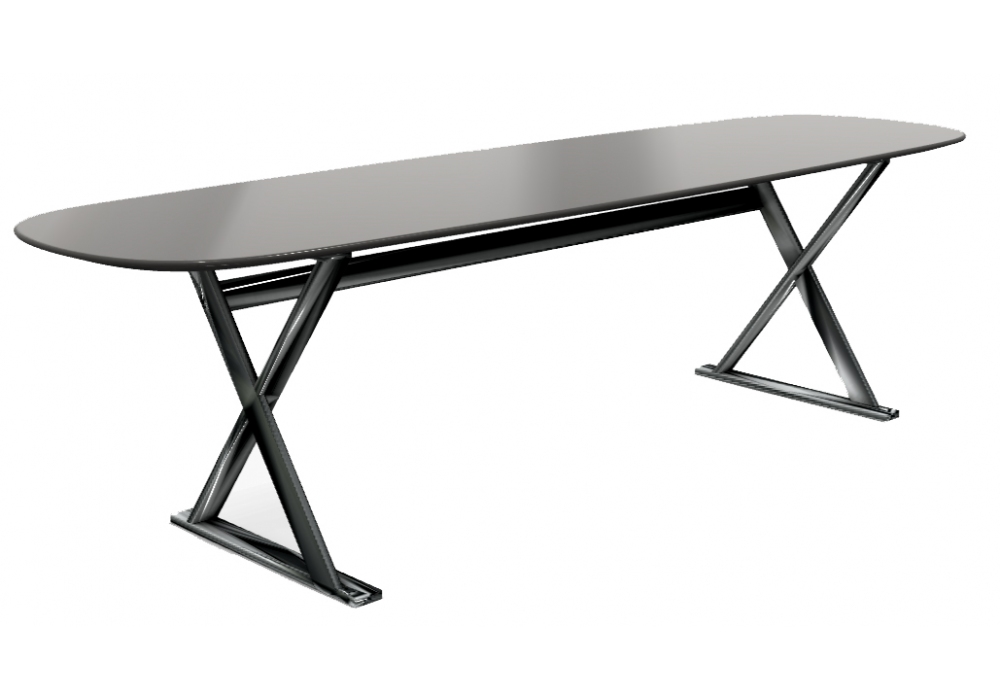 Pathos diseñada por Antonio Citterio para Maxalto es una mesita con tablero lacado con acabado gris acero brillante. Estructura de acero cromado pulido.
