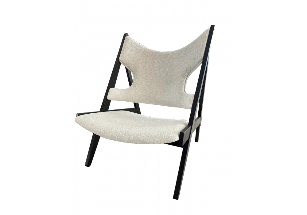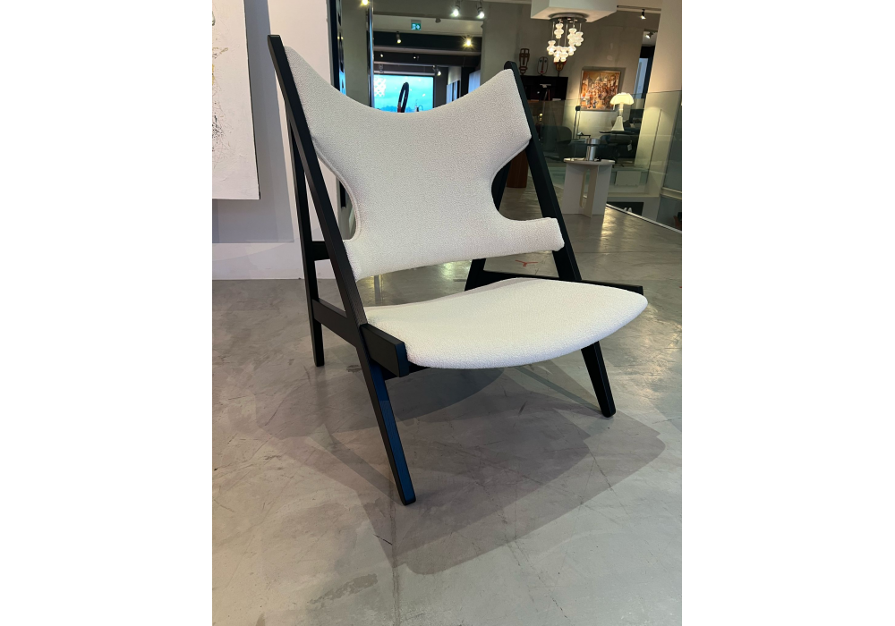 Knitting diseñada por Ib Kofod-Larsen para Audo Copenhagen es una butaca con estructura de roble teñido oscuro y asiento y respaldo tapizados en tela.