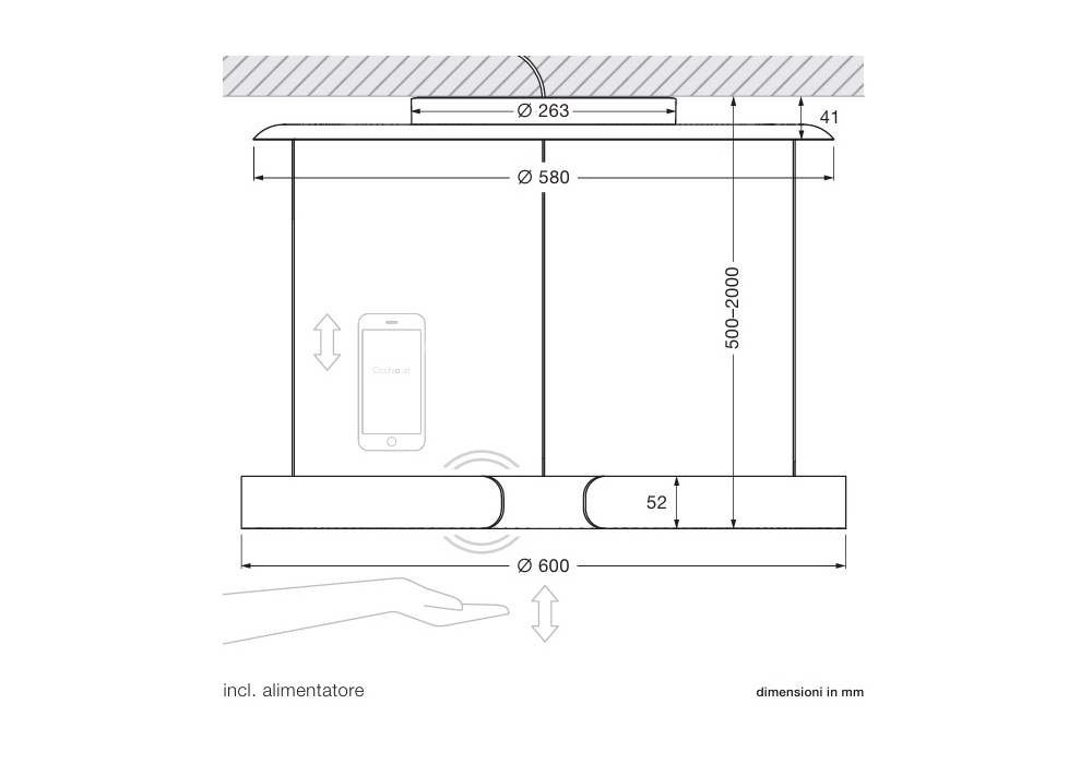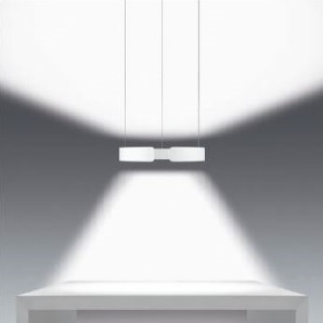 Mito Sospeso Move 60 diseñada por Occhio es una lámpara de suspensión LED de altura regulable y regulable mediante Occhio air. Está fabricada en aluminio, acero pintado, revestimiento PVD, plástico, silicona óptica y fibra de vidrio.