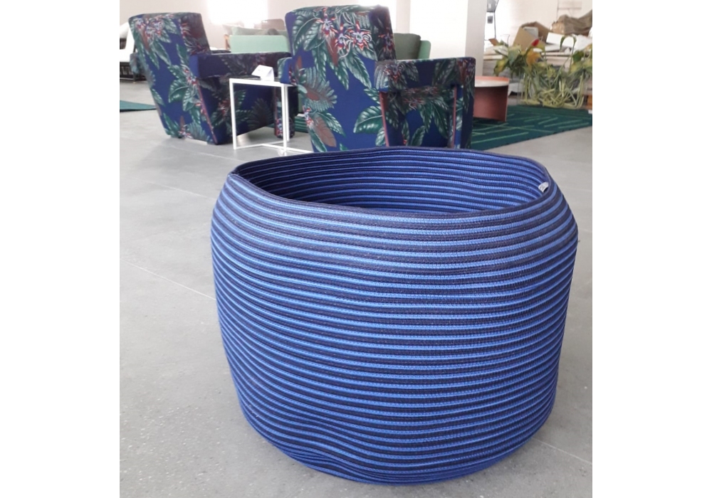 Karam diseñada por B&B Italia CR&S es una cesta de suelo, realizada en cordón de poliolefina en la variante azul ultramar/azul rey. Perfecta para jarrones y macetas.