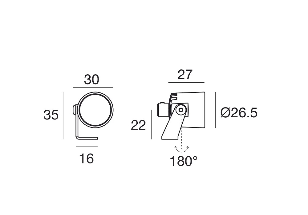 Eyelet65_R diseñado por Linea Light es un proyector de exterior de una sola emisión fabricado en aluminio 6026 con acabado negro mediante anodizado de poro abierto y recubrimiento en polvo, y un difusor de vidrio extraclaro. Incluye una pica de tierra de acero AISI 304.