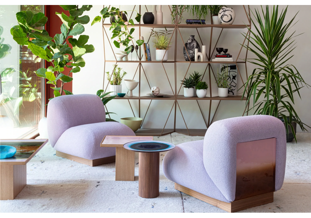 Clay diseñado por Zanellato/Bortotto para Moroso es una butaca con base de chapa de nogal. El respaldo está revestido con una placa de cerámica esmaltada a mano. Tapizado en tela.