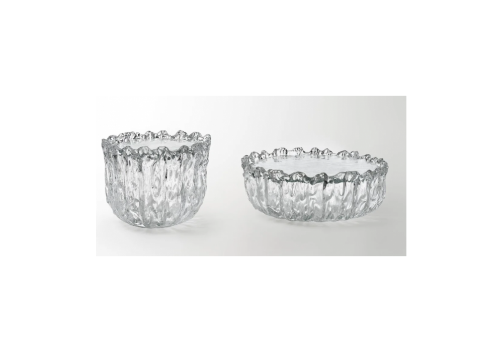 Fountain diseñada por Tokujin Yoshioka para Glas Italia, es una mesa auxiliar con base de cristal de Murano fundido, modelado y cincelado a mano. El tablero, también de cristal fundido, se inserta para sujetar la base.