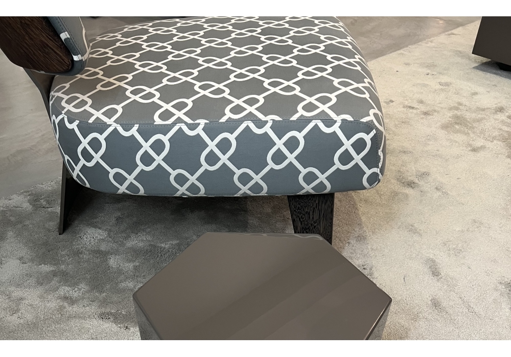 Creed Wood diseñada por Rodolfo Dordoni para Minotti es una butaca realizada con patas en madera, respaldo de metal y tapizado de tela.