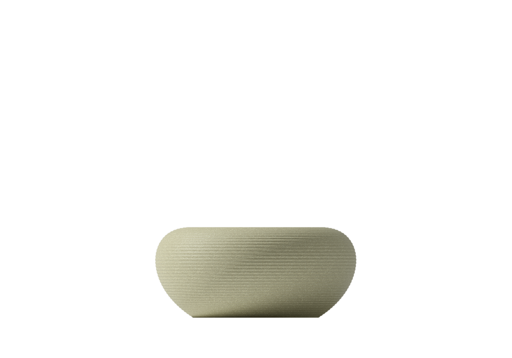 Nami diseñada por Stefano Giovannoni para Qeeboo es una mesita fabricada en polietileno reciclable teñido en masa mediante moldeo rotacional, con una tapa de vidrio templado pintado. Incorpora canales de drenaje de agua.
