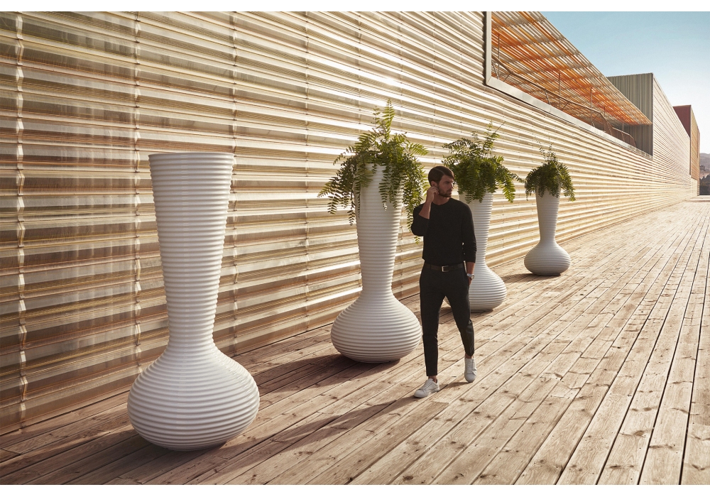 Bloom diseñado por Eugeni Quitllet para Vondom es un jarrón realizado en resina de polietileno mediante rotomoldeo. 100% reciclable. Adecuado para uso en interiores y al aire libre. Disponible en diferentes acabados.