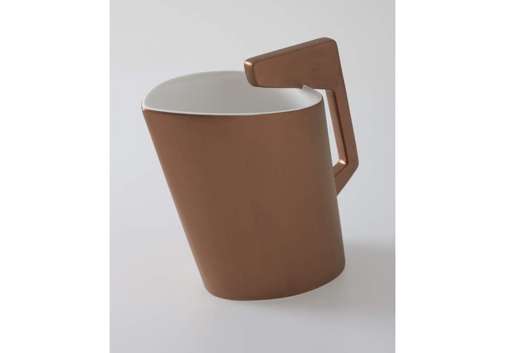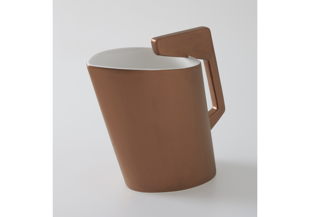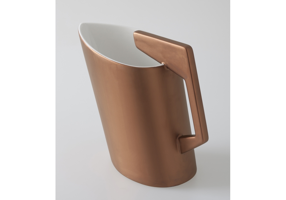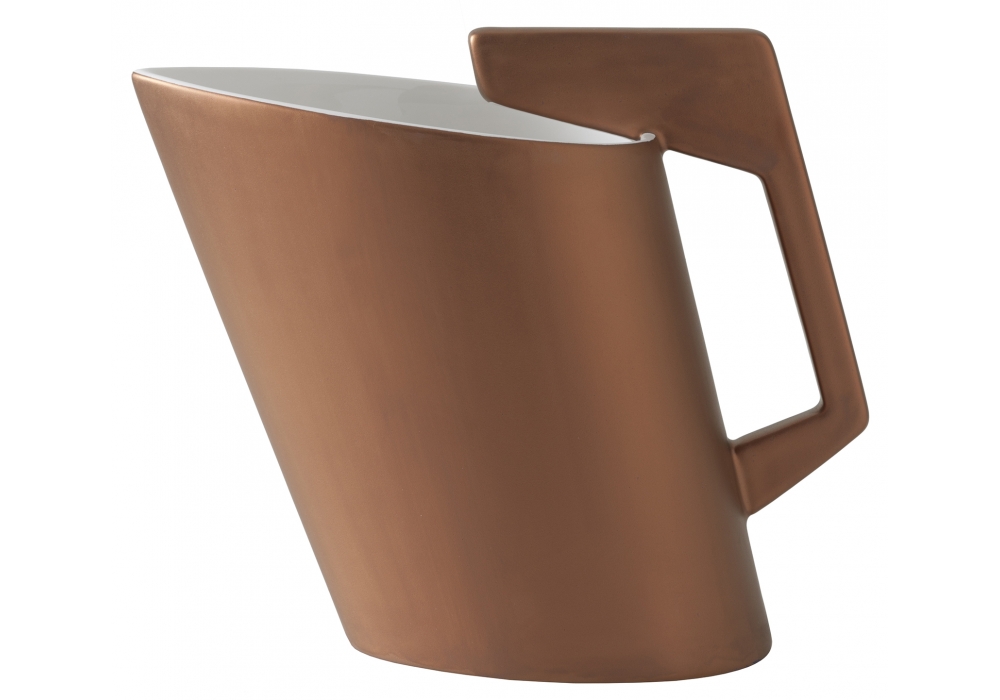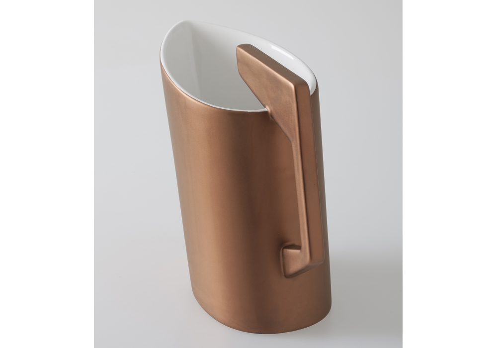 H2O Bilbao diseñado por Patricia Urquiola para Bosa es un decantador en cerámica blanca brillante en el interior y cobre mate en el exterior, de forma inclinada inspirada en Kaiku, una herramienta de madera de la cultura vasca, que se usaba a menudo para la leche. Con H2O Bilbao puedes dar importancia al contenido también con el contenedor.
