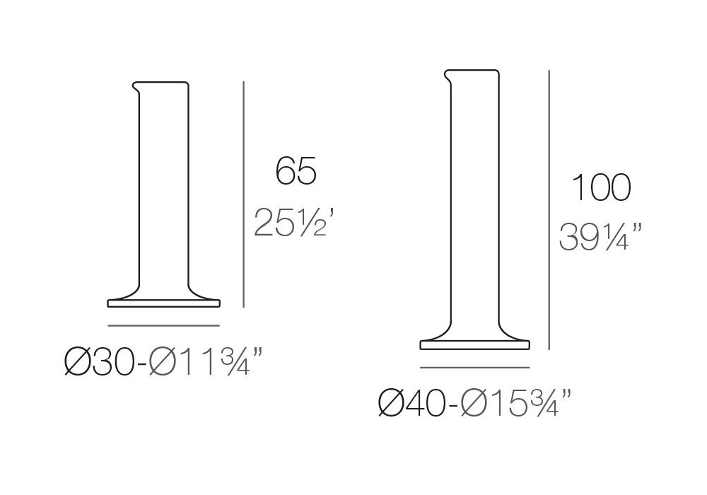 | Dimensiones | Ø 30 x H 65 cm; Ø 40 x H 100 cm. |