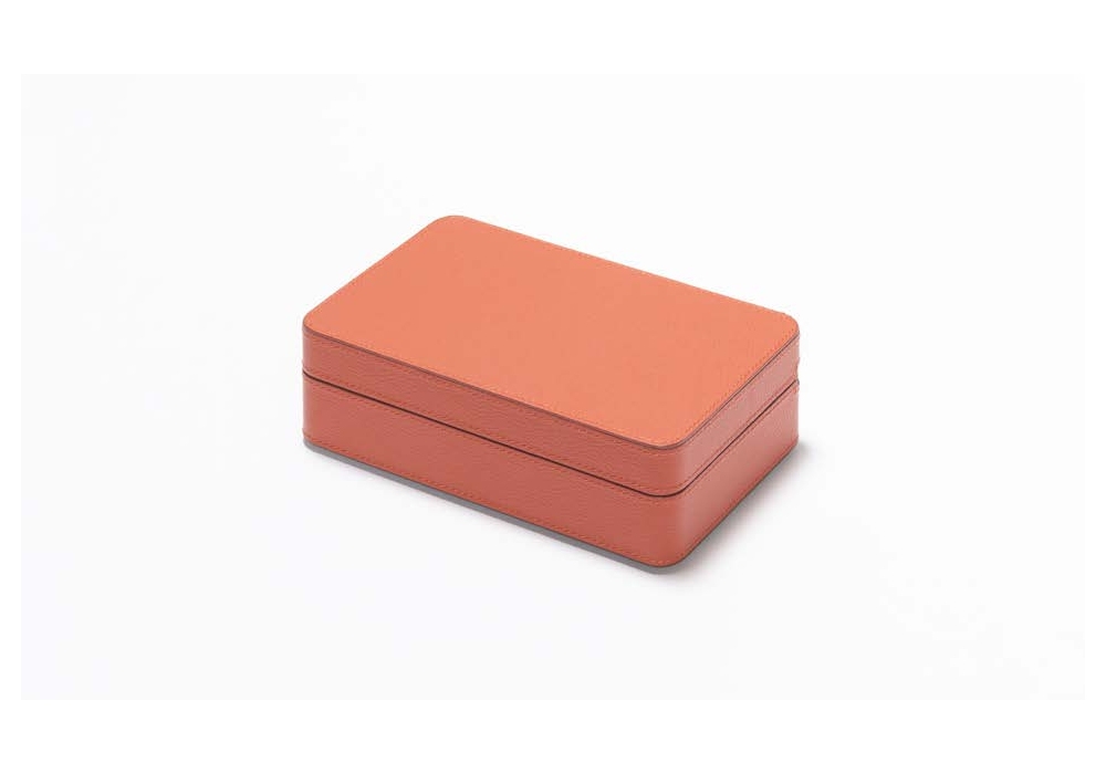 Cards Wooden Box diseñada por Giobagnara x Poltrona Frau es una caja para tarjetas realizada en madera de nogal y parcialmente revestida en Pelle Frau® ColorSphere®. La caja está equipada con dos compartimentos internos para guardar tarjetas, obtenidos a partir de divisores de madera revestidos con Pelle Frau® ColorSphere®.