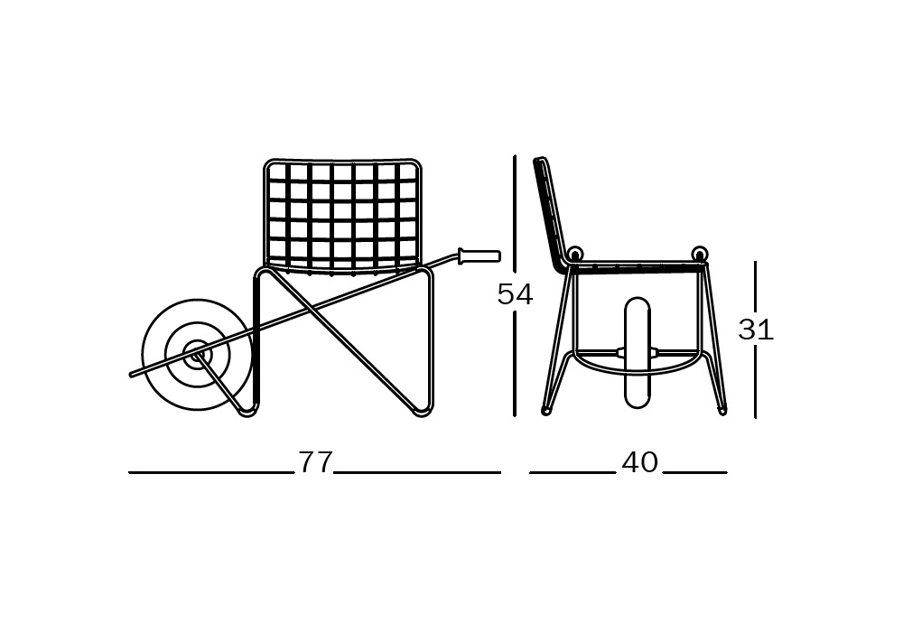 Trotter diseñada por Rogier Martens para Magis Me Too es una silla infantil con estructura en varilla de acero pintada de verde o amarillo. Rueda y pomos en polipropileno.
