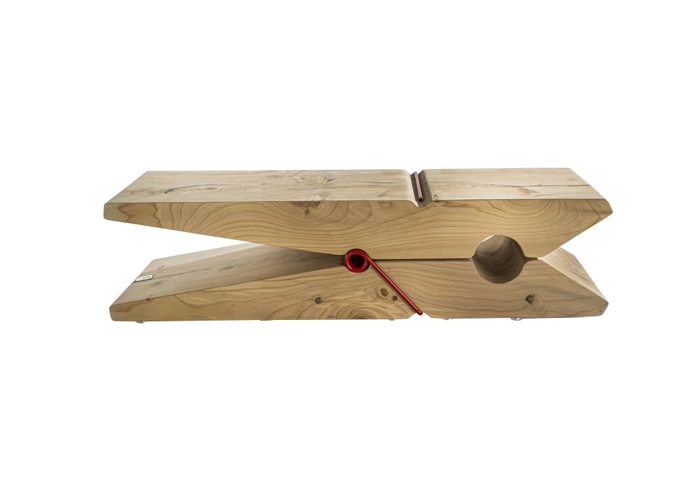 Molletta Kids diseñado por Baldessari y Baldessari para Riva 1920 es un banco en cedro perfumado macizo elaborado a partir de bloques individuales, caracterizado por un diseño escultórico que juega con el típico arte pop fuera de escala. Versión pequeña dedicada a los más pequeños.