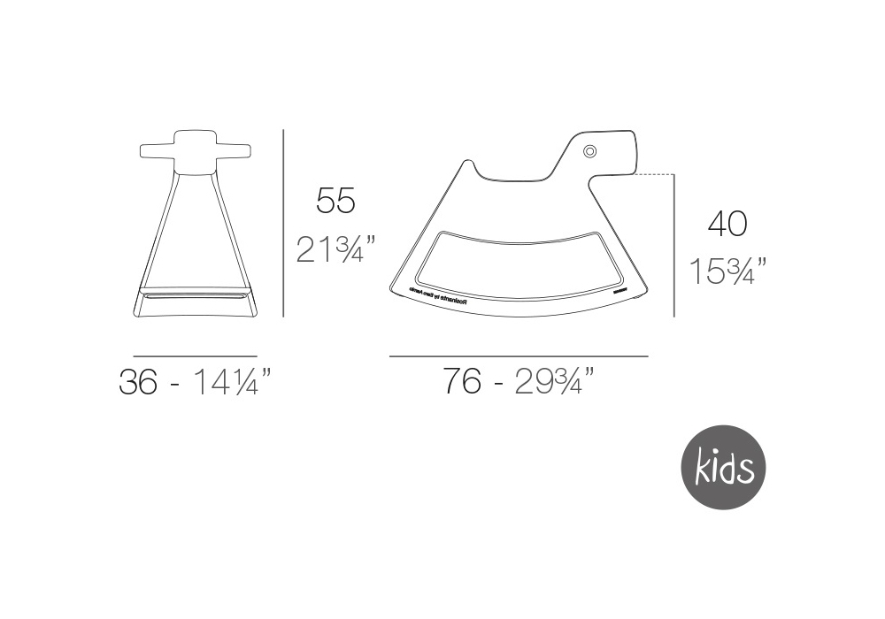 Rosinante Kids diseñada por Eero Aarnio para Vondom es una mecedora para adultos y niños basada en la forma de un caballo. Disponible en diferentes acabados.