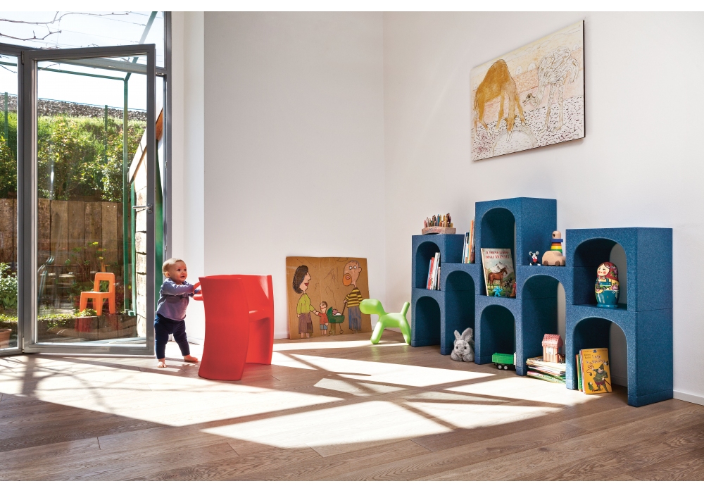 Eur design by Giulio Iacchetti for Magis Me Too is a shelving system in sintered expanded polypropylene. Stacking and adjoining.