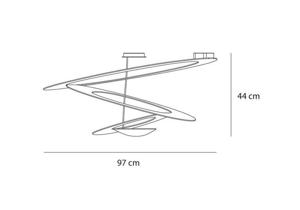 Pirce diseñada por Giuseppe Maurizio Scutellà para Artemide es una lámpara de techo estructurada por anillos concéntricos escalonados en aluminio pintado de blanco. La fuente de luz adoptada es de tipo LED regulable.