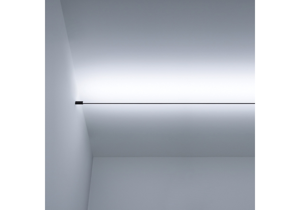 Infinito diseñada y producida por Davide Groppi es una lámpara de techo o de pared completamente estructurada en metal pintado negro mate. El cuerpo de la lámpara está hecho de tira de acero armónico que se puede seccionar y adopta un módulo LED regulable en diferentes versiones y gradaciones de luz. Infinito está disponible en diferentes modelos y versiones.
