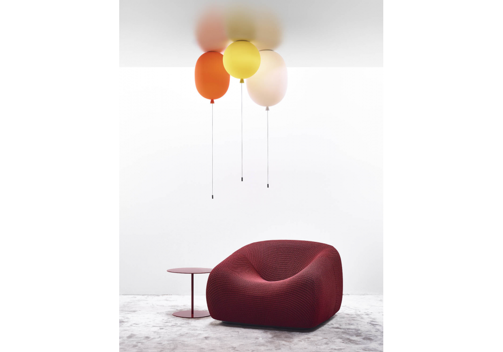 Memory diseñada por Boris Klimek para Brokis, es una lámpara de techo con difusor esférico de vidrio opalino en diferentes colores triplex mate o brillante. Rosetón metálico. La fuente de luz es LED o halógena con cable de encendido negro o blanco.