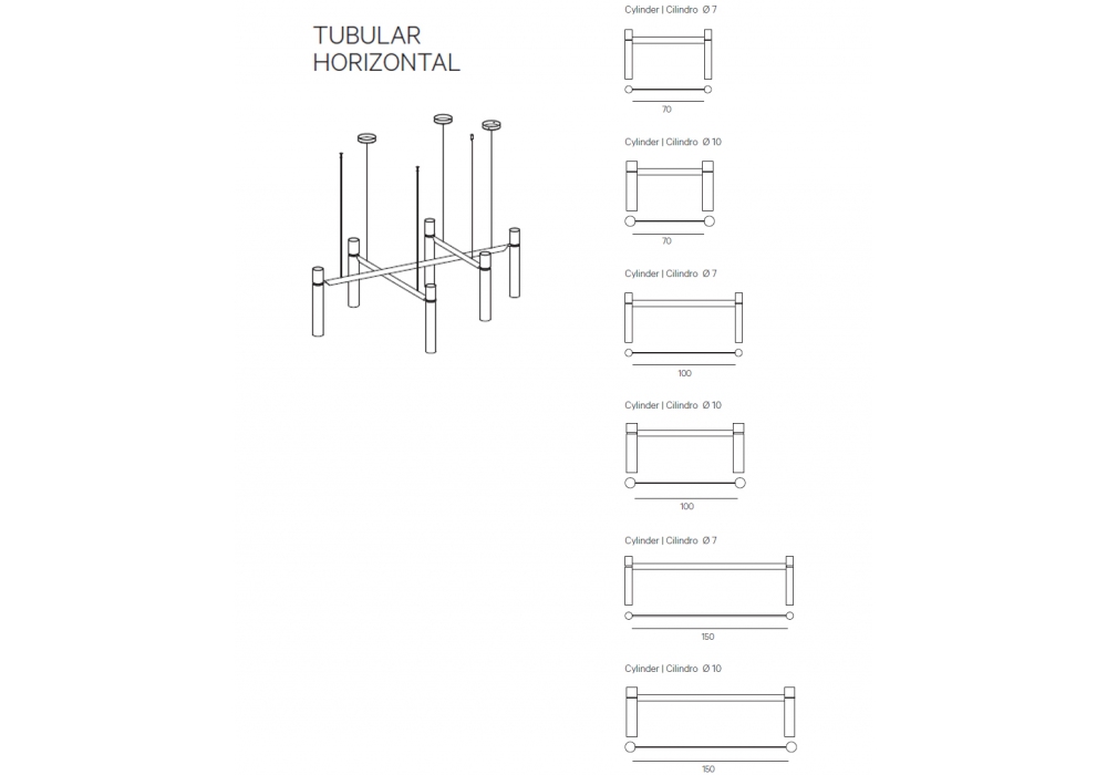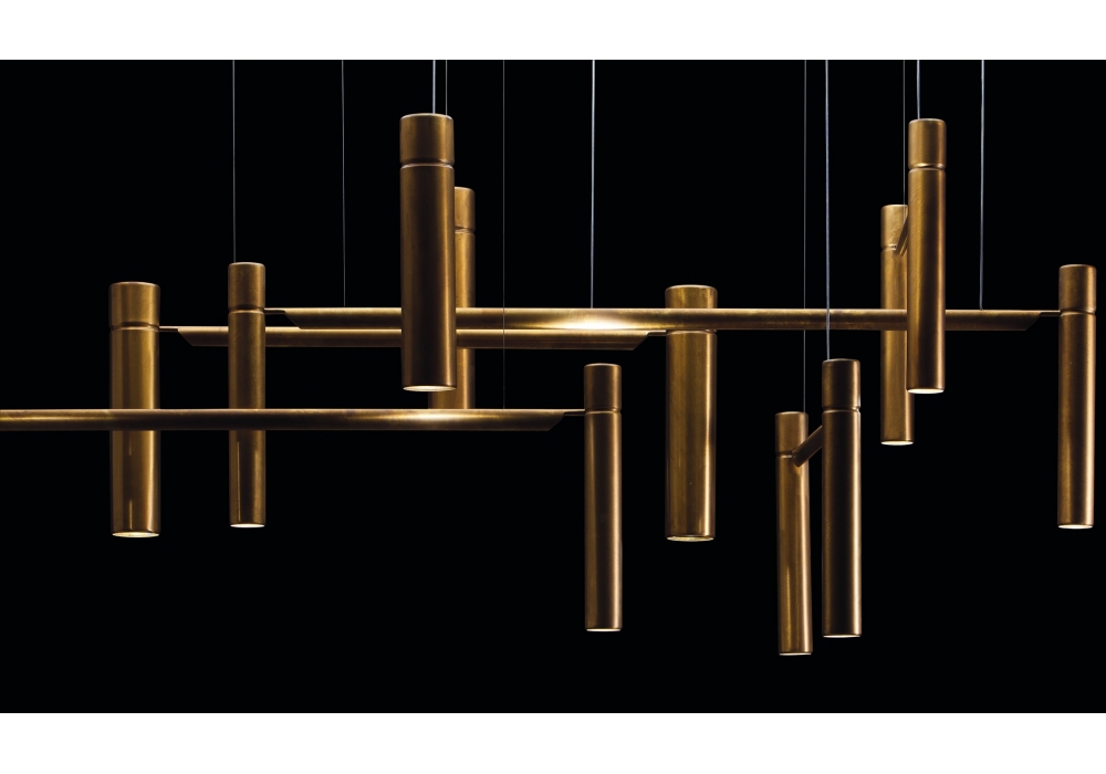 Tubular Horizontal diseñada por Massimo Castagna para Henge es una lámpara de techo de tubo de metal bruñido a mano. Las fuentes de luz utilizadas son LED con casquillo GU10 con sistema de regulación Pase Cut. Tubular Horizontal está disponible en diferentes acabados y gradaciones de fuente de luz.