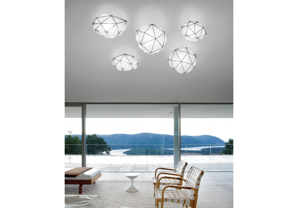 Semai diseñada por Alberto Saggia y Valerio Sommella para vistosi es una lámpara de techo con estructura portante en metal blanco brillante. El difusor es de cristal blanco brillante y adopta una fuente de luz regulable LED o halógena con conexión E14 E27. Semai está disponible en diferentes modelos.