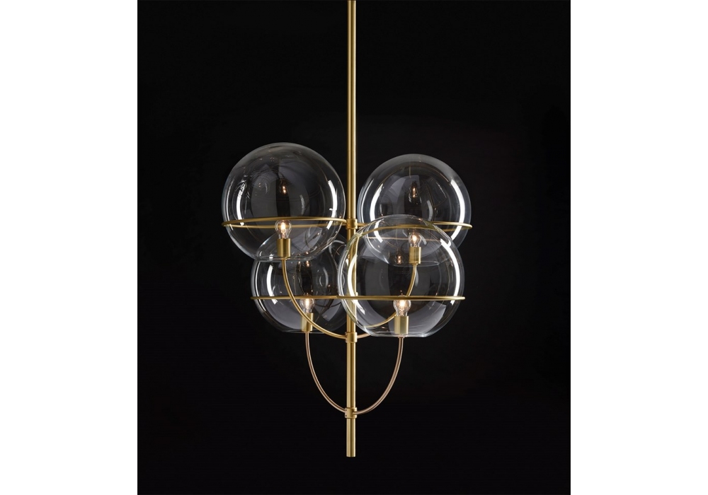 Lyndon diseñada por Vico Magistretti para Oluce es una lámpara de techo con estructura portante en metal pintado. Los difusores son esféricos de cristal transparente y albergan una fuente de luz. Lyndon está disponible en diferentes acabados.