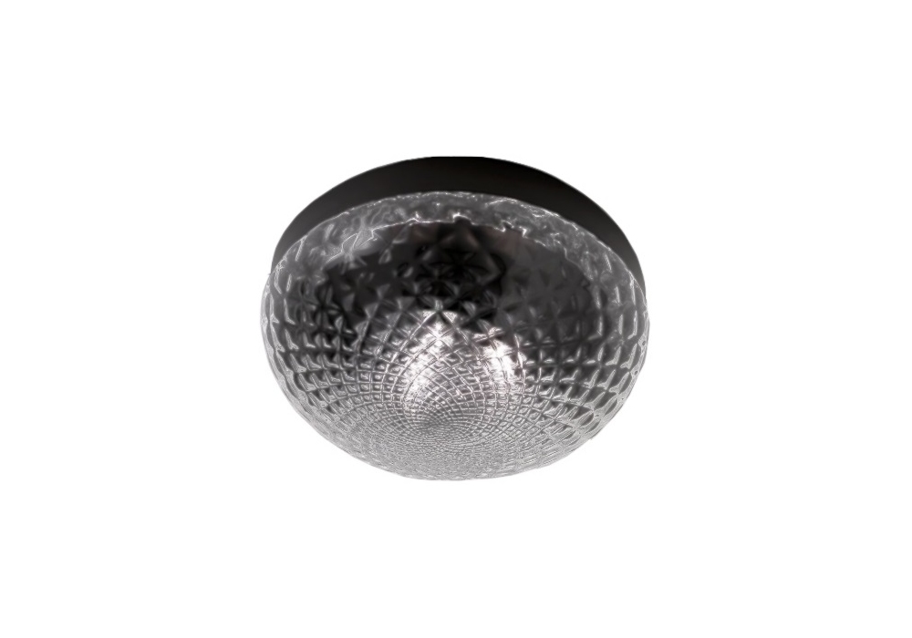 Rays 7209/P3 diseñada por Matteo Zorzenoni para MMLampadari es una lámpara de techo en metal negro mate o latón satinado con difusor de vidrio balloton.