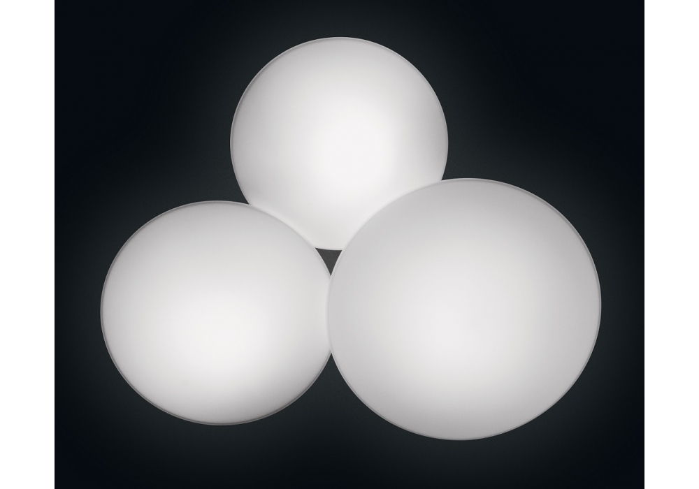 Puck Three-Sphere diseñada por Jordi Vilardell para Vibia es un aplique circular con estructura portante en aluminio pintado de blanco. Los difusores son de vidrio soplado y protegen las fuentes de luz LED. Puck Three-Sphere disponible en diferentes modelos.