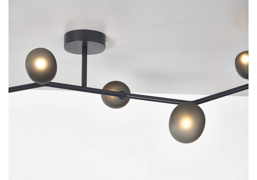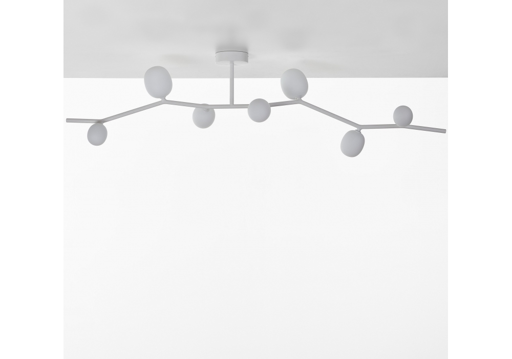 Ivy diseñado por Lucie Koldová para Brokis es un sistema de techo modular caracterizado por componentes de vidrio de tres dimensiones y tres colores colocados en las ramas según una secuencia preestablecida. Pantalla de cristal con superficie grabada por ambos lados con fuente de luz LED en versión regulable o no regulable. Cuerpo de hierro mate pintado en polvo de color blanco o gris antracita.