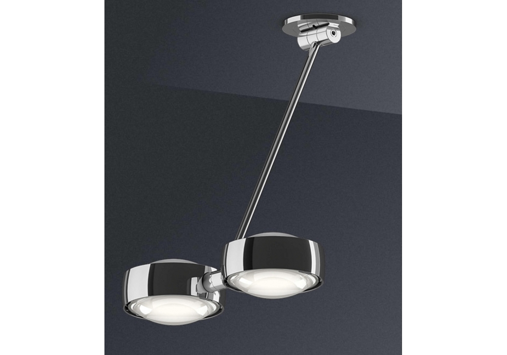 Sento Doppio diseñada por Occhio es una lámpara de techo LED fabricada en aluminio, plástico, vidrio y plástico óptico con base plana para montar en caja subterránea o base alta con fuente de alimentación incluida. Regulable mediante "control sin contacto" o mediante Occhio air. Disponible en diferentes acabados, dimensiones y modelos.