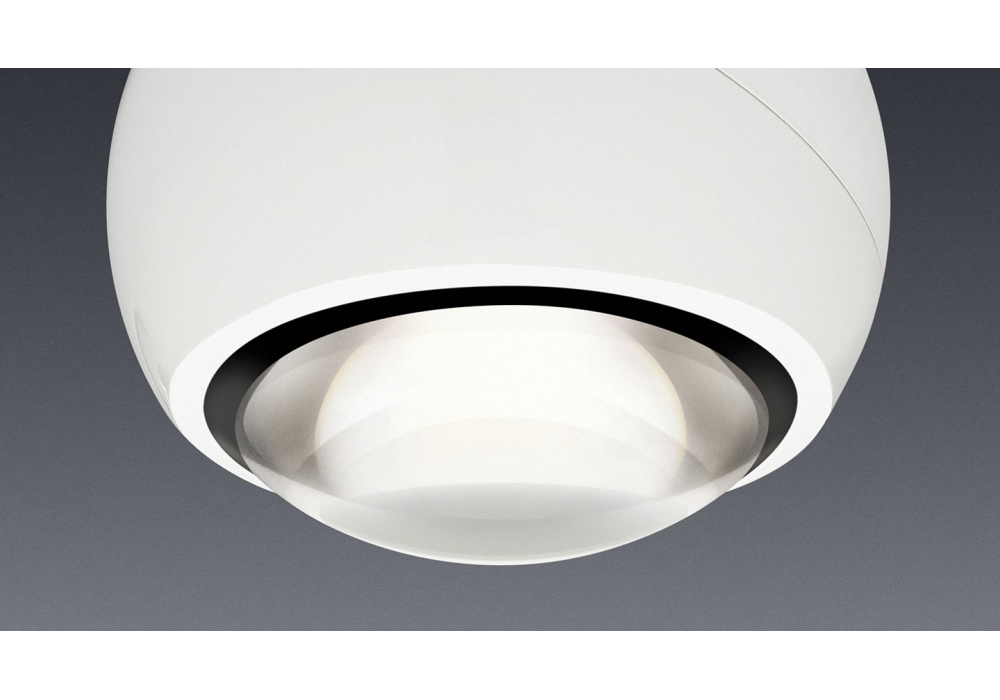 io Giro diseñado por Occhio es un foco LED de techo giratorio de 360 ° e inclinable a 45 ° con cabezal esférico y lente óptica. Fabricado en aluminio cromado, pintado o anodizado, plástico, vidrio y plástico óptico. Disponible en diferentes acabados.