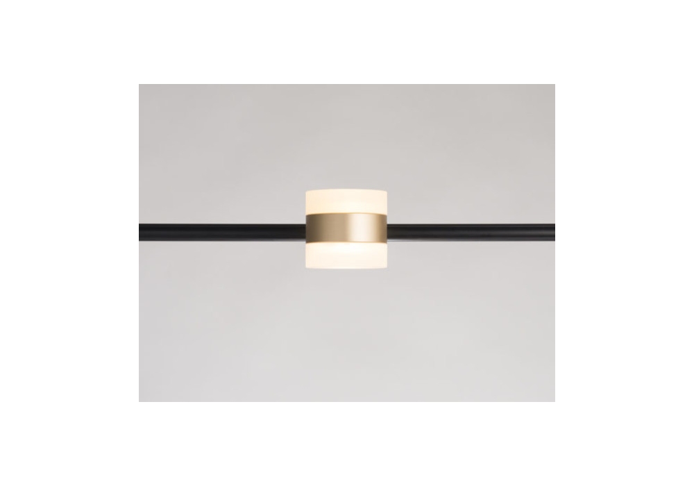 Cilon Layer diseñado por Studio Truly Truly para Rakumba es un foco realizado en aluminio anodizado negro u oro, difusor de cristal.