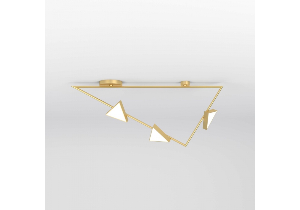 Triangle with Flat Triangles diseñada por Atelier Areti es una lámpara de techo realizada en metal pintado en blanco, negro o latón cepillado.