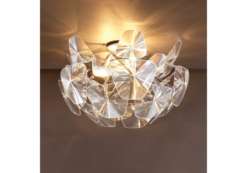 Hope diseñada por Francisco Gomez Paz y Paolo Rizzatto para Luceplan es una lámpara de techo con estructura en acero pulido y policarbonato transparente. Lentes prismáticas en metacrilato. Está diseñado para todas las fuentes de luz. Disponible en diferentes dimensiones.