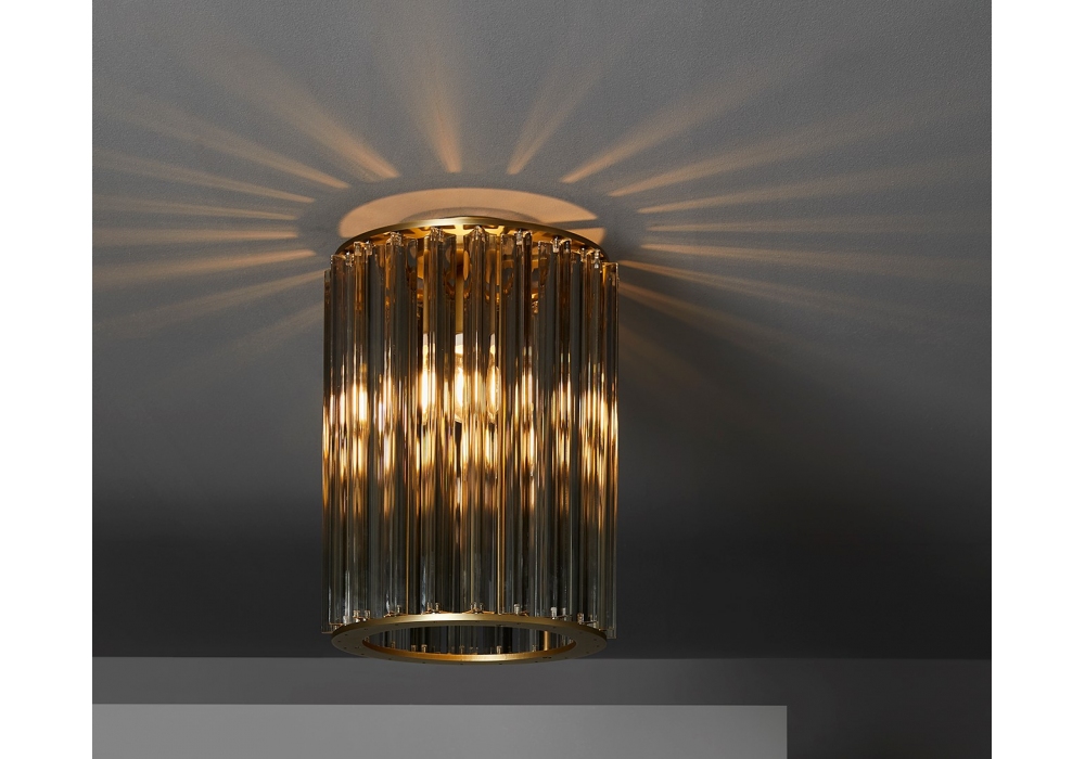 Crown diseñada por Massimo Tonetto para Venicem es una lámpara de techo con luz difusa. Estructura en latón bruñido claro o níquel negro mate. El kit de atenuación se vende por separado.