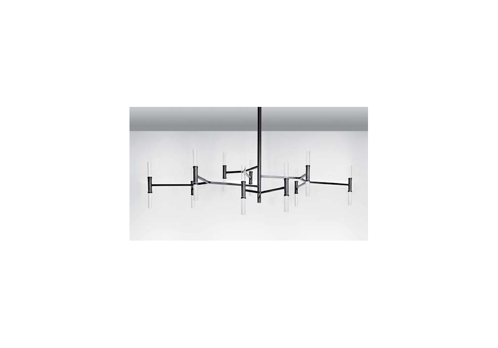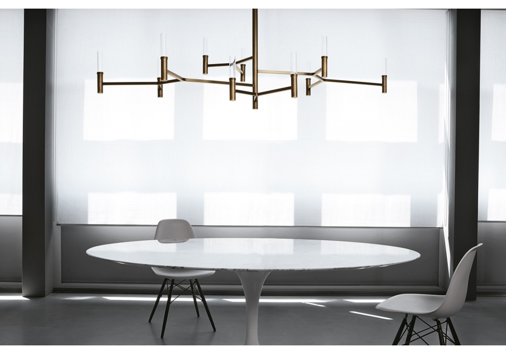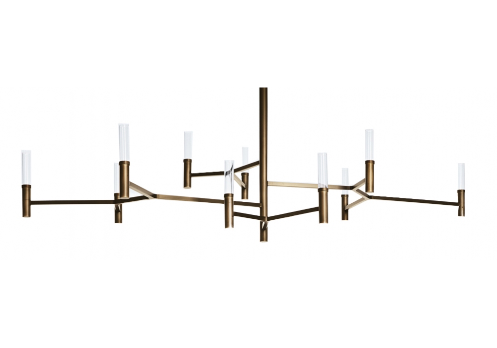 Roots diseñada por Massimo Tonetto para Venicem es una lámpara de suspensión de luz difusa. Estructura de latón bruñido oscuro y difusores de cristal satinado. Disponible en el modelo con portalámparas simple o doble. El kit de atenuación se vende por separado.