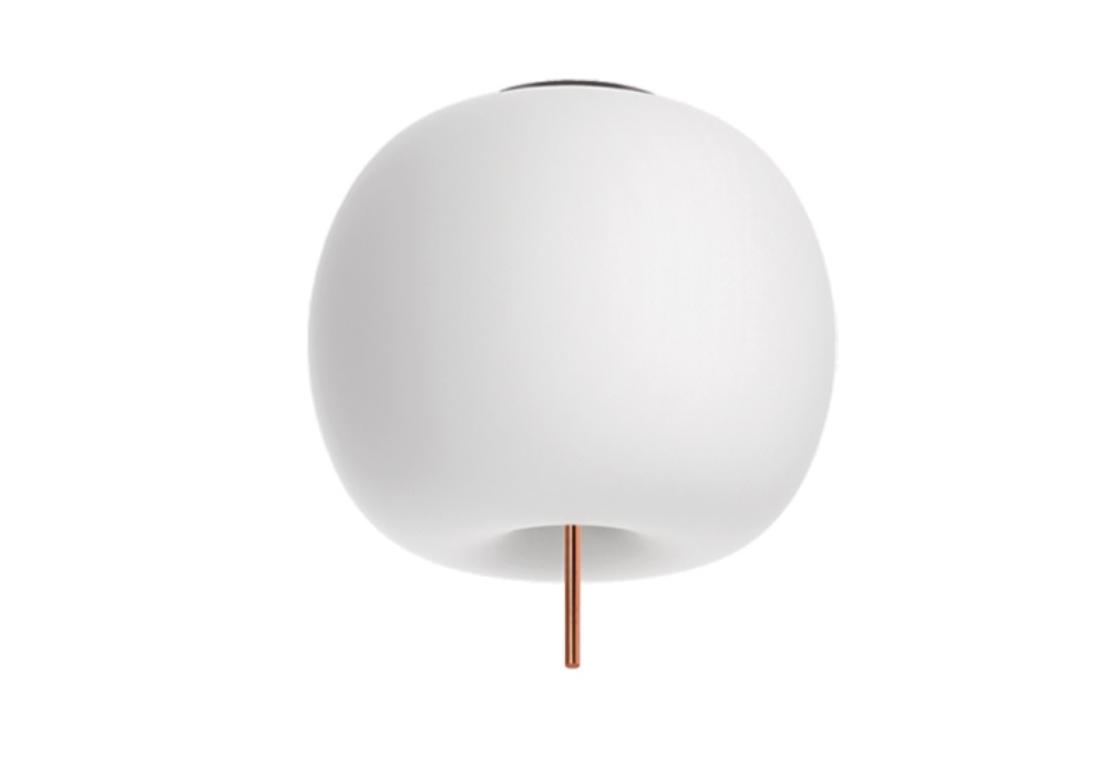Kushi diseñada por Alberto Saggia & Valerio Sommella para Kundalini es una lámpara de techo con difusor en vidrio opal estratificado y soplado y estructura en metal pintado en los acabados: negro, cobre y latón. Disponible en dos dimensiones.