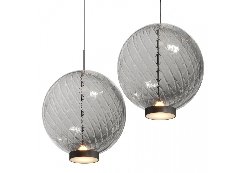 Ohay diseñada por Oriano Favaretto para Cattelan Italia es una lámpara de techo con pantalla en vidrio artístico decorado ahumado. Fijación a techo en acero cromado negro. iluminación led. Mando a distancia y receptor opcionales.