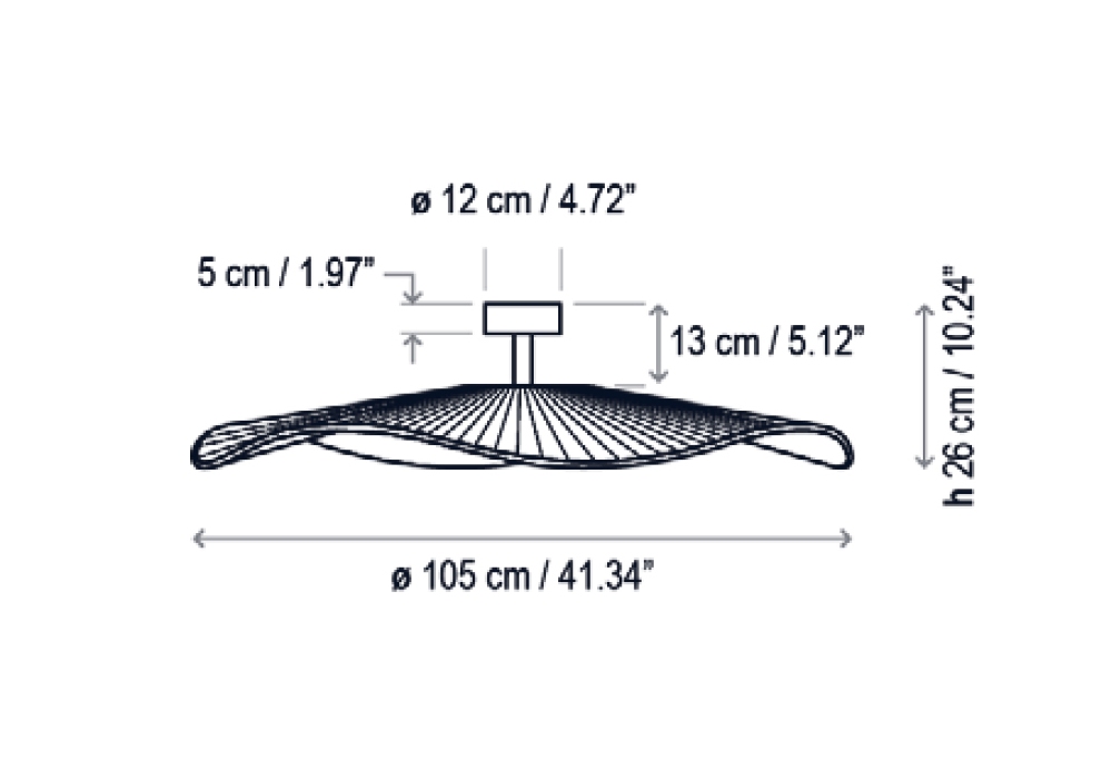 Mediterrània entworfen von Alex Fernández Camps für Bover ist eine Deckenleuchte mit Stütze und Tragstruktur aus Metall und lackiertem Aluminium. Der Lampenschirm besteht aus Aluminium mit einem Diffusor aus Polycarbonat und schützt eine LED-Lichtquelle mit Triac-Dimmsystem. Mediterrània ist in verschiedenen Ausführungen erhältlich.