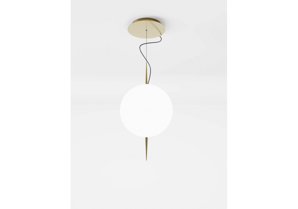 Ad-Astra diseñada por Marco Lavit para Living Divani es una lámpara de techo con estructura portante en tubo de latón obtenido mediante torno. El difusor tiene forma esférica y es de color blanco opalino y apantalla una fuente de luz LED con posibilidad de sistema de regulación regulable a distancia. Ad-Astra está disponible en diferentes acabados.