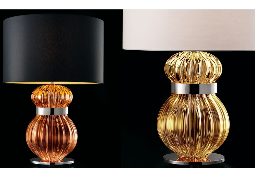 Medina diseñada y producida por Barovier & Toso es una lámpara de sobremesa con base y collar del cuerpo de la lámpara en metal. El cuerpo de la lámpara es de cristal veneciano con pantalla circular de tela. La fuente de luz utilizada es del tipo LED regulable o halógena. Medina está disponible en diferentes acabados.