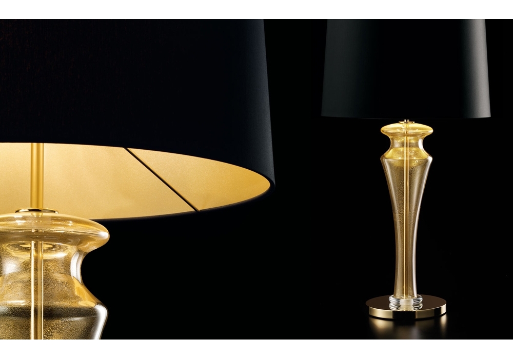 Saint Germain diseñada por Giorgia Brusemini para Barovier & Toso es una lámpara de mesa con base circular y detalles en metal cromado o dorado galvanizado. El cuerpo de la lámpara está revestido de cristal veneciano y adopta una pantalla circular en tejido que apantalla las fuentes de luz regulables LED o halógenas. Saint Germain está disponible en diferentes acabados.