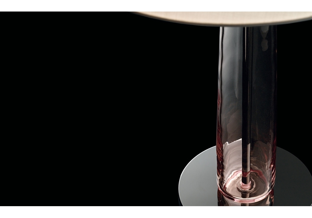 Amsterdam diseñada y producida por Barovier & Toso es una lámpara de mesa con base circular de metal y cuerpo de cristal veneciano adornado con bobinas de cristal. El difusor tiene forma circular en tela y protege una fuente de luz LED o halógena regulable. Amsterdam está disponible en diferentes acabados.
