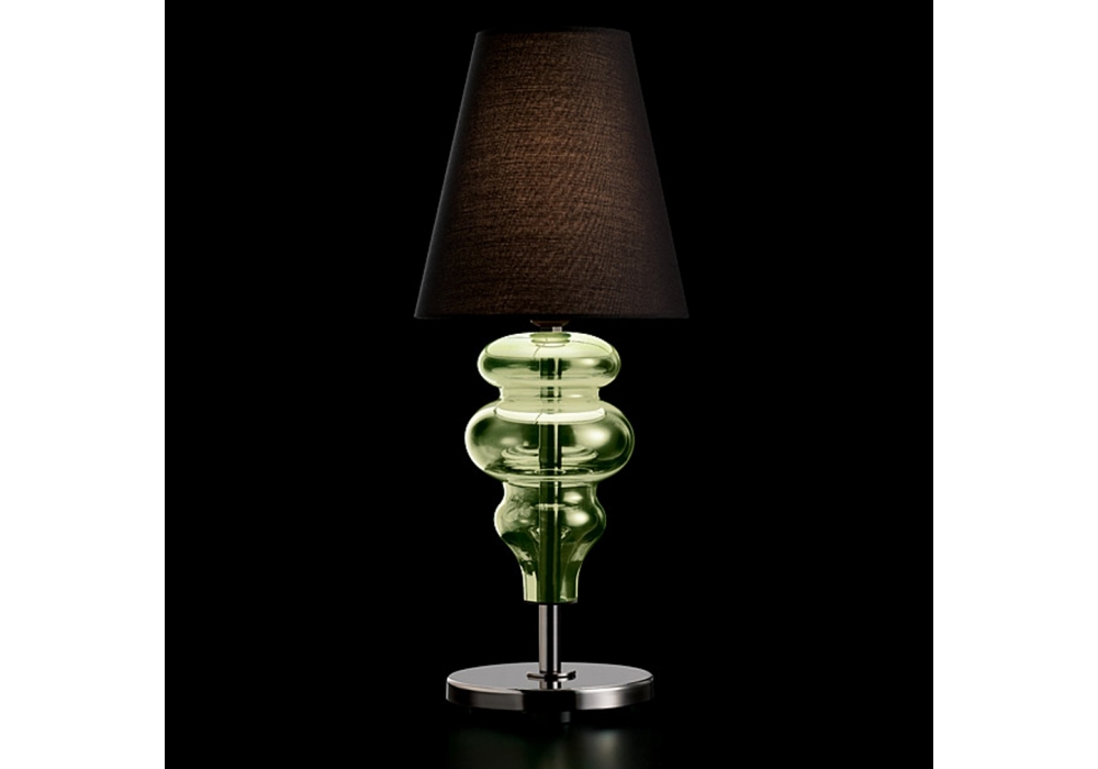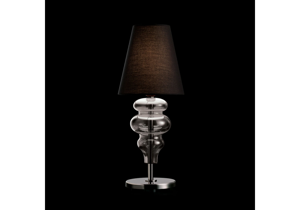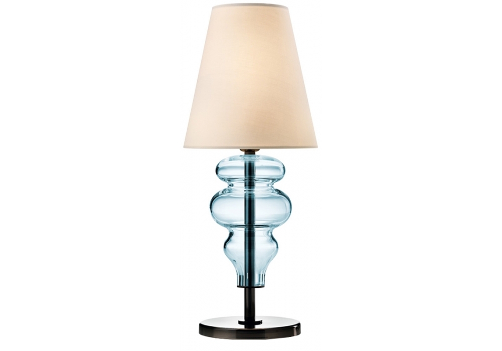 Ran diseñada y producida por Barovier & Toso es una lámpara de sobremesa con base circular y varilla vertical de metal recubierta de cristal veneciano. La pantalla es de tela y protege una fuente de luz LED o halógena regulable. Ran está disponible en diferentes acabados.