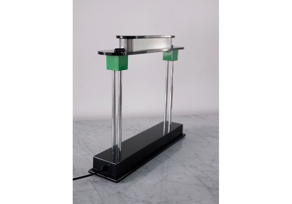 Pausania TW diseñada por Ettore Sottsass para Artemide es una lámpara de mesa con base cuadrangular y cabezal en metacrilato con partes metálicas en latón. La fuente de luz adoptada es de tipo LED con sistema de regulación variable de luz blanca.