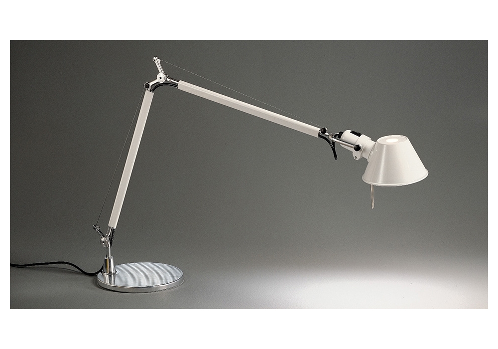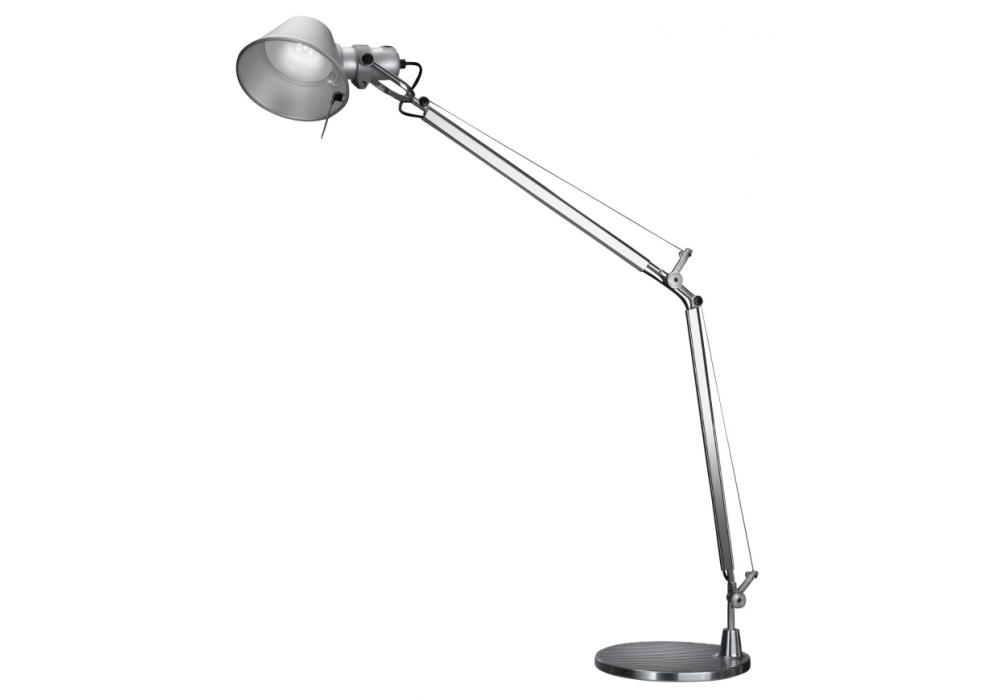 Tolomeo E27 diseñada por Michele De Lucchi & Giancarlo Fassina para Artemide es una lámpara de mesa con base circular de acero y cuerpo realizado en aluminio pintado. La estructura dispone de brazos móviles con articulaciones y soportes en aluminio pulido. El difusor puede girar tanto sobre un eje horizontal como vertical y alberga una fuente de luz LED. Tolomeo E27 está disponible en diferentes acabados con soporte fijo, abrazadera o base circular.