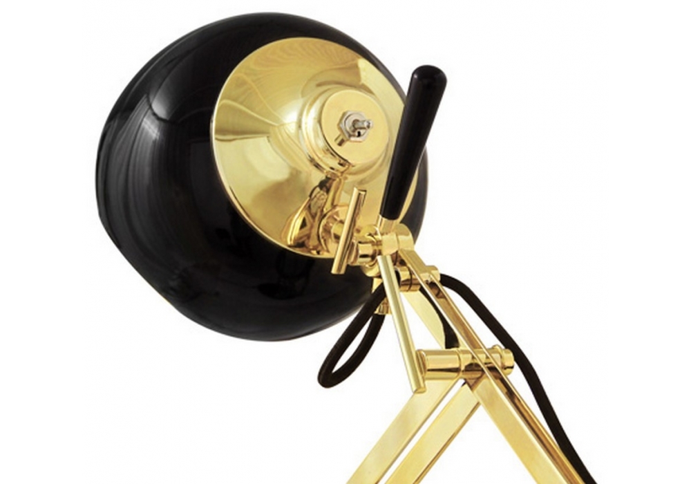 Billy diseñada por DelightFULL es una lámpara de sobremesa, la estructura y la pantalla están fabricadas a mano en latón y aluminio, además presenta un acabado en baño de oro y pantalla pintada en negro.