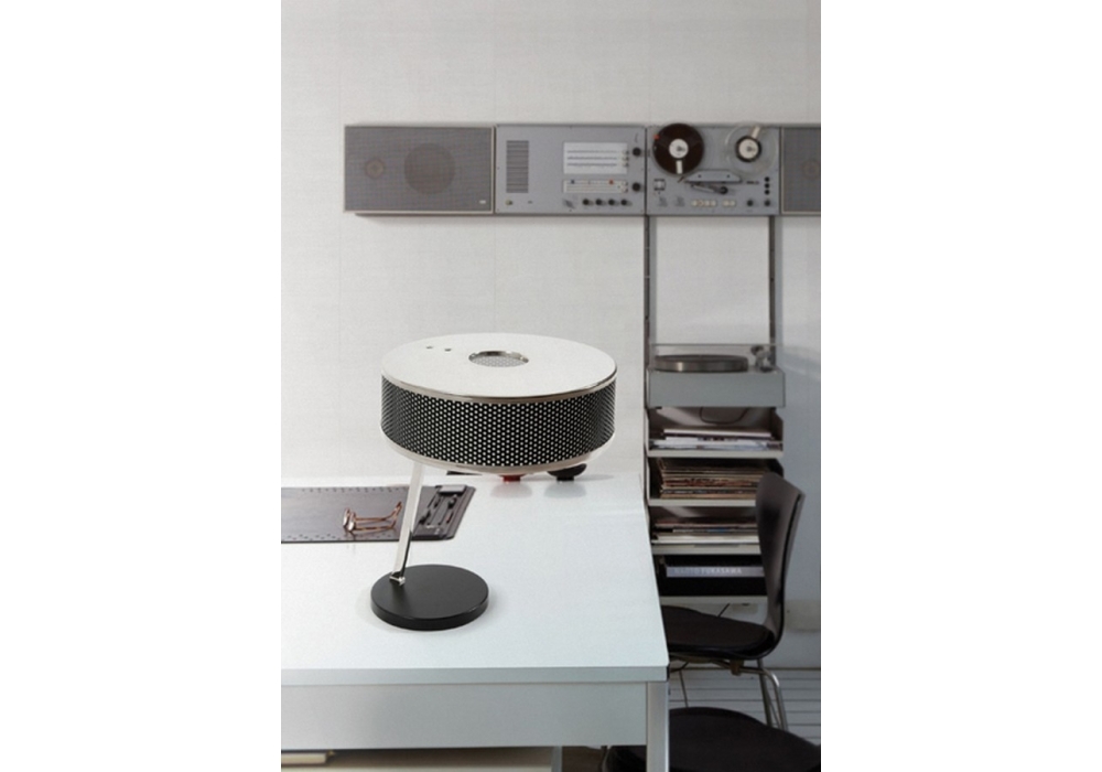 Marcus diseñada por DelightFULL es una lámpara de sobremesa, la base y la pantalla están fabricadas en aluminio y lacadas en negro mate. El cuerpo presenta un acabado niquelado.