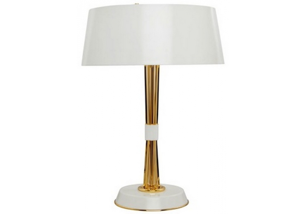 Miles diseñada por DelightFULL es una lámpara de sobremesa con pantalla en aluminio lacado negro mate por fuera y blanco mate por dentro. El cuerpo tiene un acabado chapado en cobre para una apariencia más contemporánea.