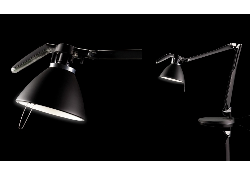 Fortebraccio diseñada por Alberto Meda y Paolo Rizzatto para Luceplan es una lámpara de mesa con brazos en chapa de hierro cortado y estirado y tija en acero pintado. Juntas de microfundición de zamak de bajo espesor.