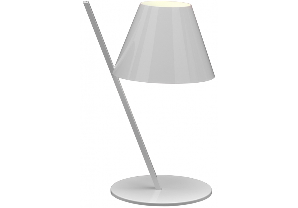 La Petite diseñada por Quaglio Simonelli para Artemide es una lámpara de mesa con base circular y varilla oblicua en aluminio pintado. La pantalla es de forma circular y está hecha de plástico y protege una fuente de luz LED. La Petite está disponible en diferentes acabados.